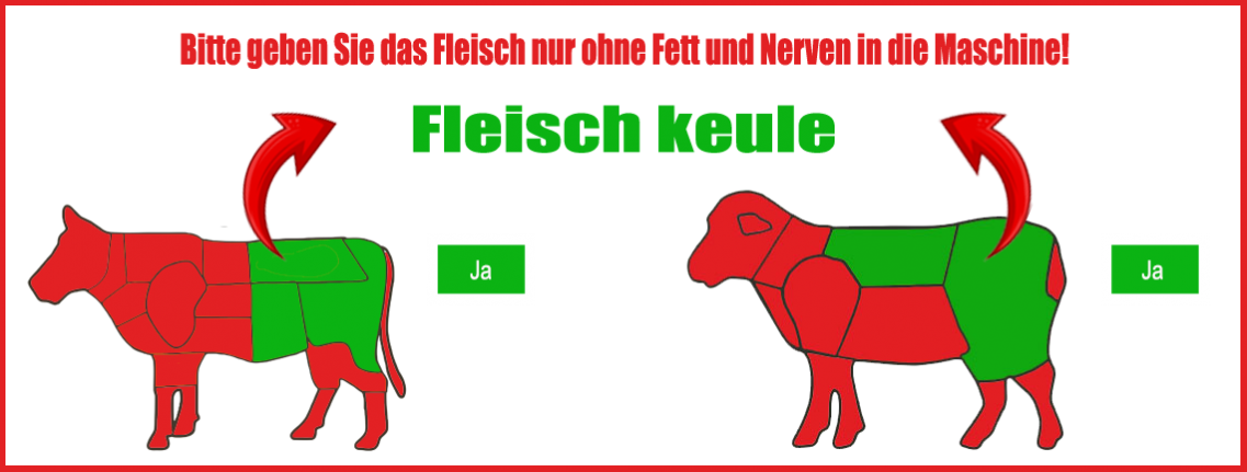FRAGEN SIE VOR DEM KAUF SORGFÄLTIG NACH DER EIGNUNG DER MASCHINE FÜR DAS VON IHNEN VERWENDETE FLEISCH UND KAUFEN SIE DANN!!!