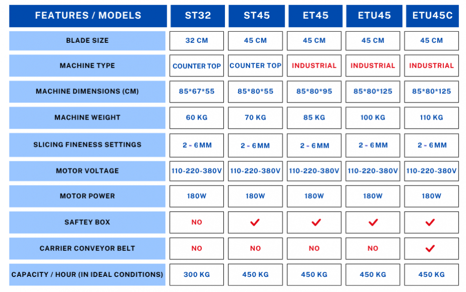 Die Klingenbreite beträgt 45cm und wird als 110V / 220V / 380V produziert.