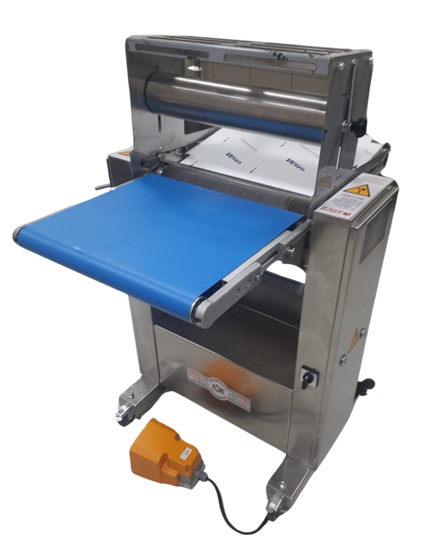 Abmessungen der Maschine 850*800*(h)1250mm und ungefähres Gewicht 110KgEs kann horizontale Schnitte bis zu 6mm Feinheit machen, einstellbar von 2mm.
