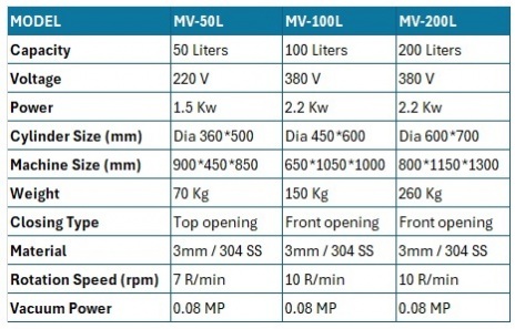 Während des Prozesses dreht sich die Trommel automatisch für bestimmte Zeiträume hin und her, sodass die Marinierflüssigkeit in das Fleisch eindringen kann.